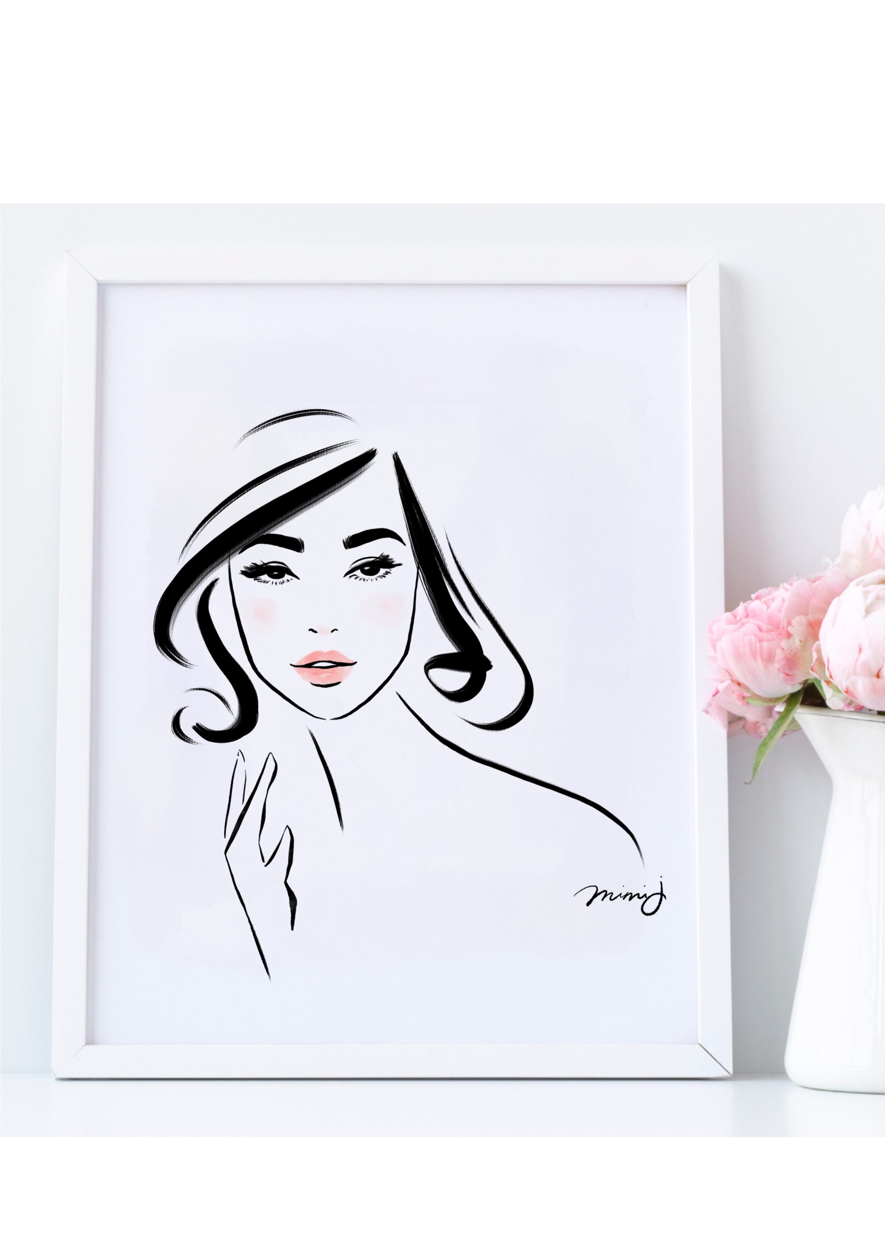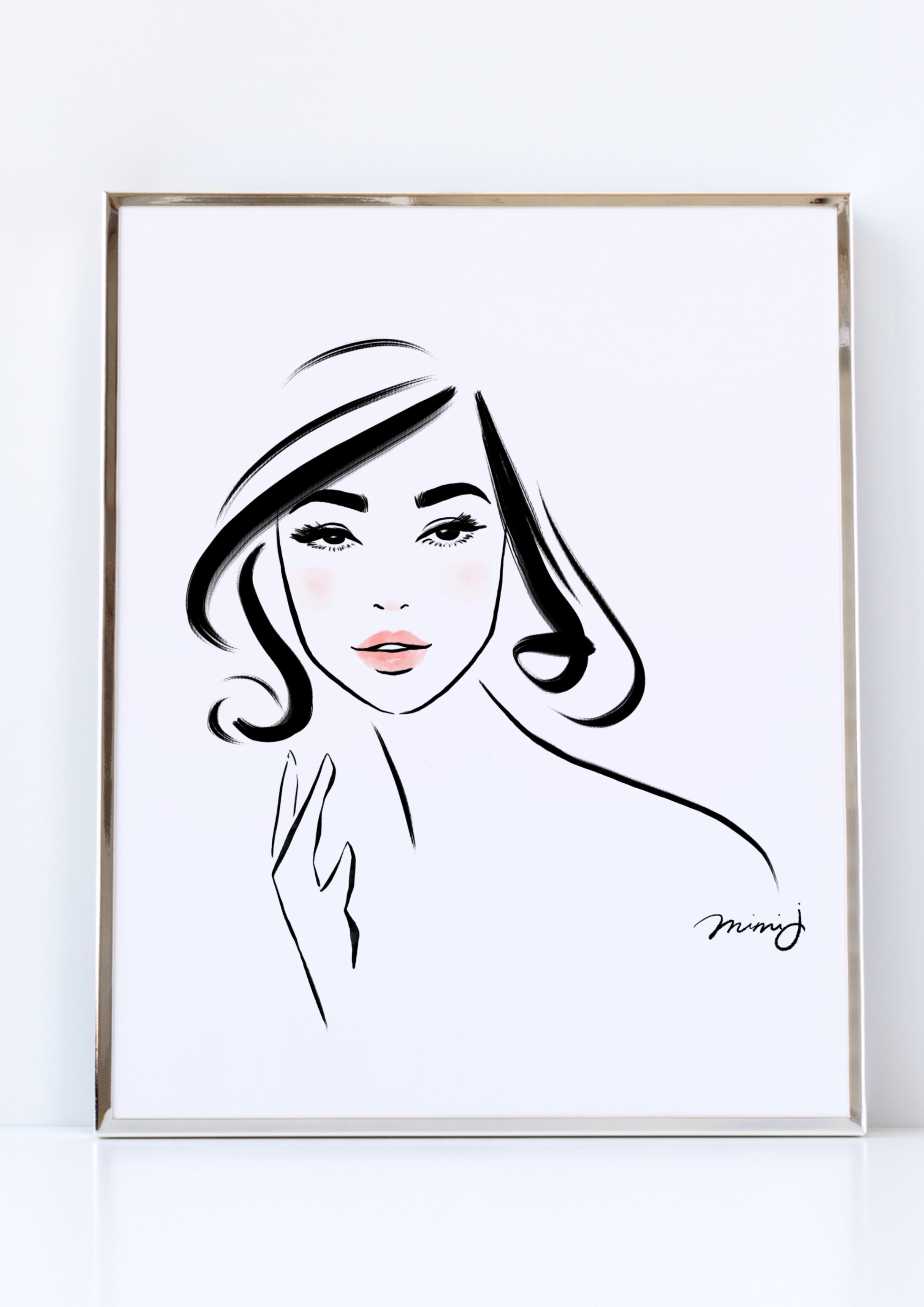 A simple yet elegant portrait of a woman. With minimal lines and classic style, this art piece evokes quiet strength and timeless feminine beauty.