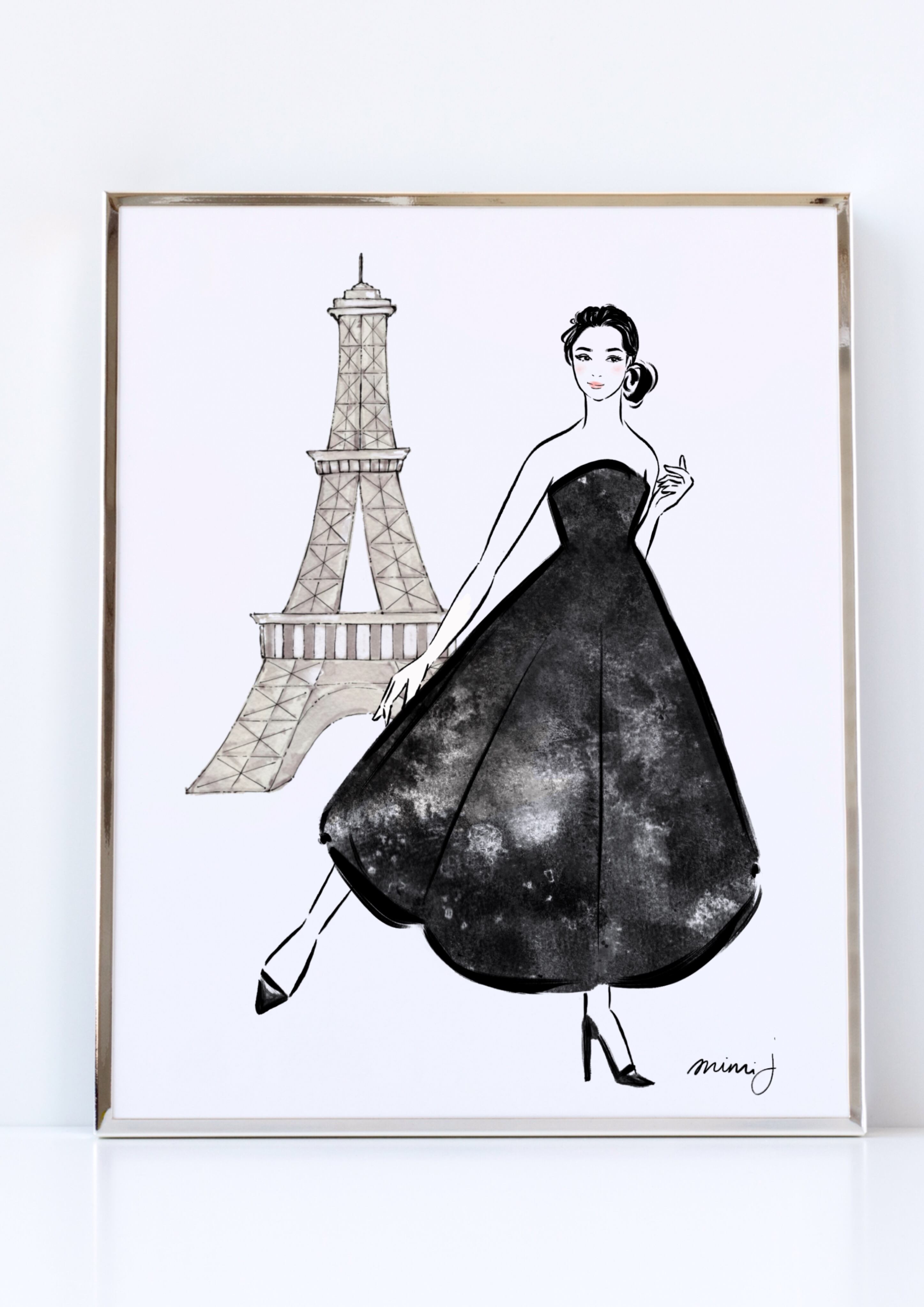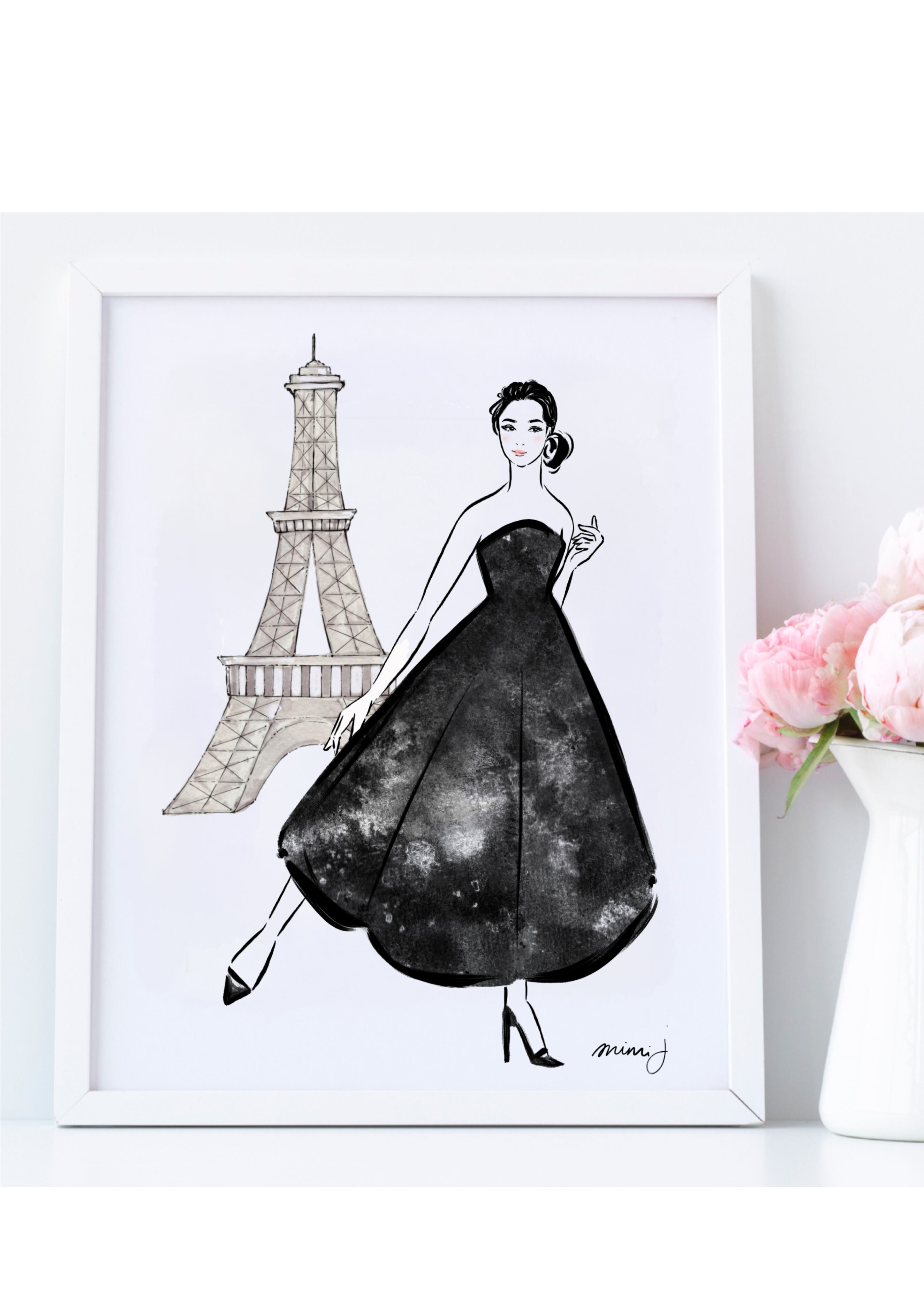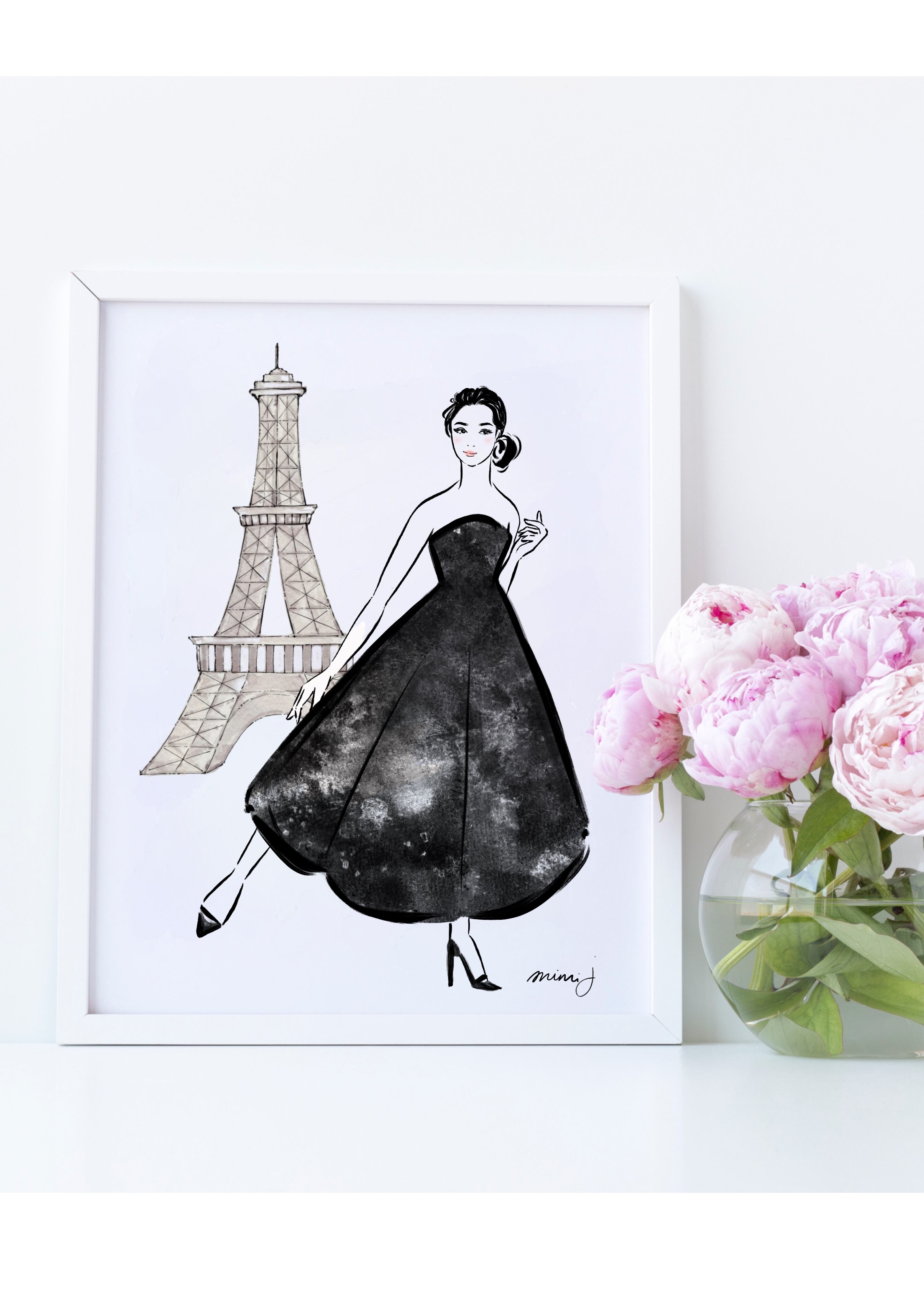 Eiffel Tower with Girl by mimiJ|Fashion Art Print